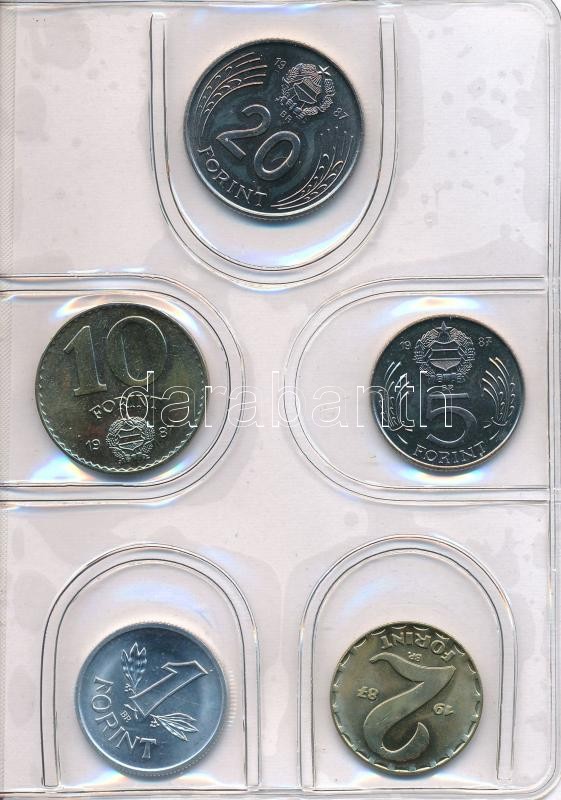 1987. 2f-20Ft (10xklf) forgalmi sor bordó műbőrtokban T:1 https://www.darabanth.com/hu/297-Gyorsarveres/297.0/Numizmatika/Magyar-es-magyar-verdejelu-fem-es-ezustpenzek~500008/1987-2f-20Ft-10xklf-forgalmi-sor-bordo-mubortokban-T1~II1587768