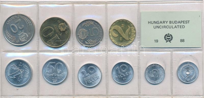 1988. 2f-20Ft (9xklf) "Magyar Népköztársaság" forgalmi érméi világoské... https://www.darabanth.com/hu/297-Gyorsarveres/297.0/Numizmatika/Magyar-es-magyar-verdejelu-fem-es-ezustpenzek~500008/1988-2f-20Ft-9xklf-Magyar-Nepkoztarsasag-forgalmi-ermei-vilagoskek-mubortokban-T1-Ad~II1587783