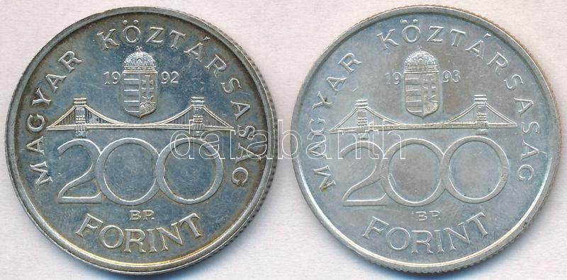 Leírás: 1992-1993. 200Ft Ag "MNB" (2x) T:2