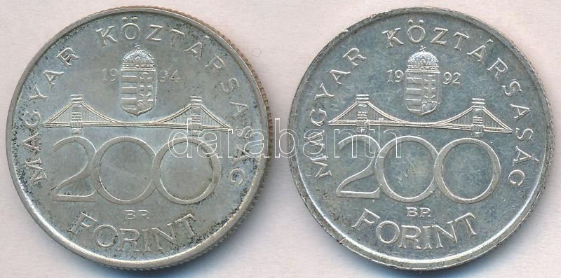 Leírás: 1992-1994. 200Ft Ag "MNB" (2x) T:2 patina