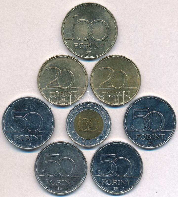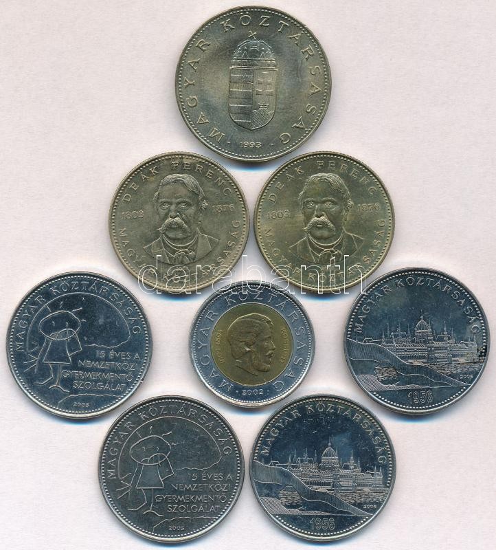 Leírás: 1993. 100Ft Cu-Ni-Zn + 2002. 100Ft Cu-Ni-Zn "Kossuth" + 2003. 20Ft Cu-Ni-Zn "Deák" (2x) + 2005. 50Ft Cu-Ni "Gyermekmentő Szolgálat" (2x) + 2006. 50Ft Cu-Ni "1956 tiszteletére" (2x) T:2