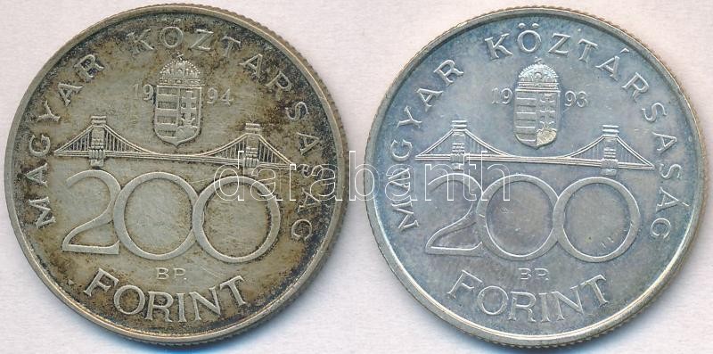 Leírás: 1993-1994. 200Ft Ag "MNB/Deák" (2x) T:2 patina