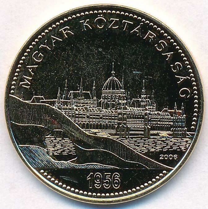 Leírás: 2006. 50Ft Cu-Ni "1956 tiszteletére" aranyozott forgalmi emlékérme T:1-