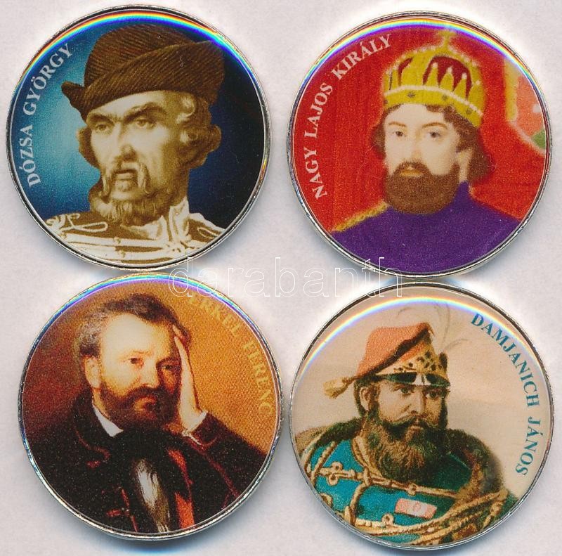 Leírás: DN 50Ft ezüstözött Cu-Ni (4xklf) "Nagy Magyarok / Nagy Lajos király, Erkel Ferenc, Dózsa György, Damjanich János" multicolor T:2