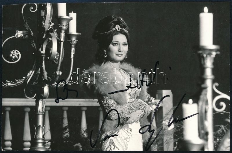 Sass Sylvia (1951-) Liszt Ferenc-dÃjas magyar opera-énekesnÅ‘ (szoprán), érdemes művész, a Halhatatlanok Társulatának örökös tagjának saját kezű aláÃrása egy a művésznÅ‘t ábrázoló fotón, 10x15 cm
