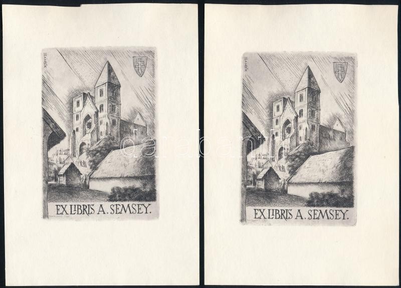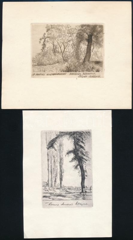 Leírás: Kaveczky Zoltán (1897-1965): 4 db ex libris. Rézkarc, papír, jelzett a karcon, 8×6 cm.