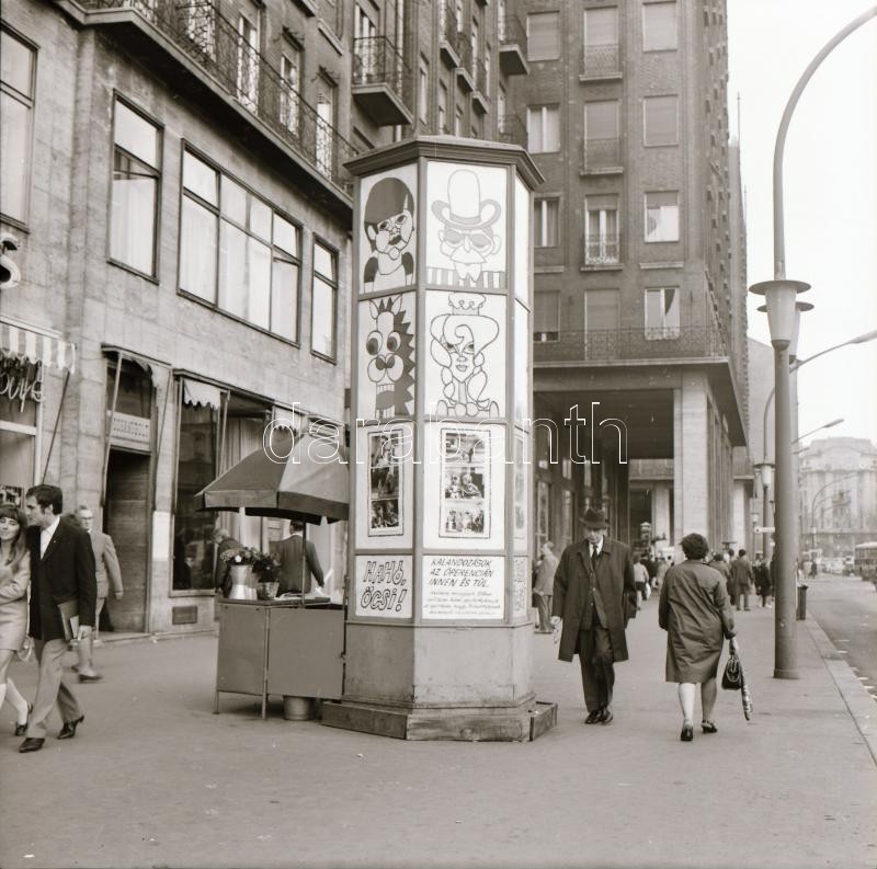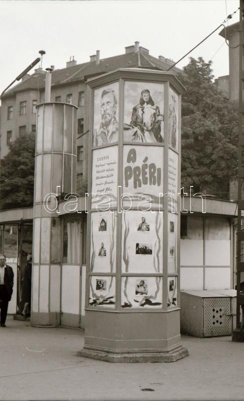 1971 Budapest, a Fővárosi Moziüzemi Vállalat hirdető oszlopai, plakáthelyei, kirakatai, ahol az új filmeket hirdették, 13 db szabadon felhasználható, vintage negatív, 6x6 cm
