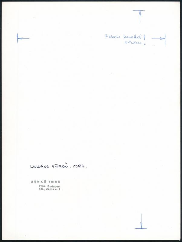 Leírás: Benkő Imre (1943- ): Lukács-fürdő 1987, fotó, hátulján feliratozva, 18×24 cm