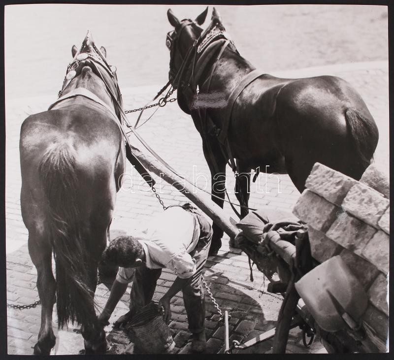cca 1940 Reich Péter Cornel vintage szociofotója egy fuvarosról, hátoldalán pecséttel jelzett, 23x25cm
