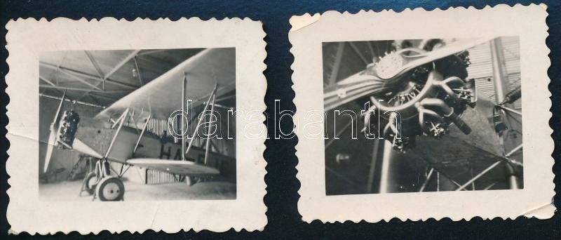 Leírás: 1934 Fokker típusú repülőgép Hajmáskéren, Weiss Manfréd-féle csillagmotorral, 2 db fotó, felültén törésnyommal, hátoldalon feliratozva, 4x5 cm
