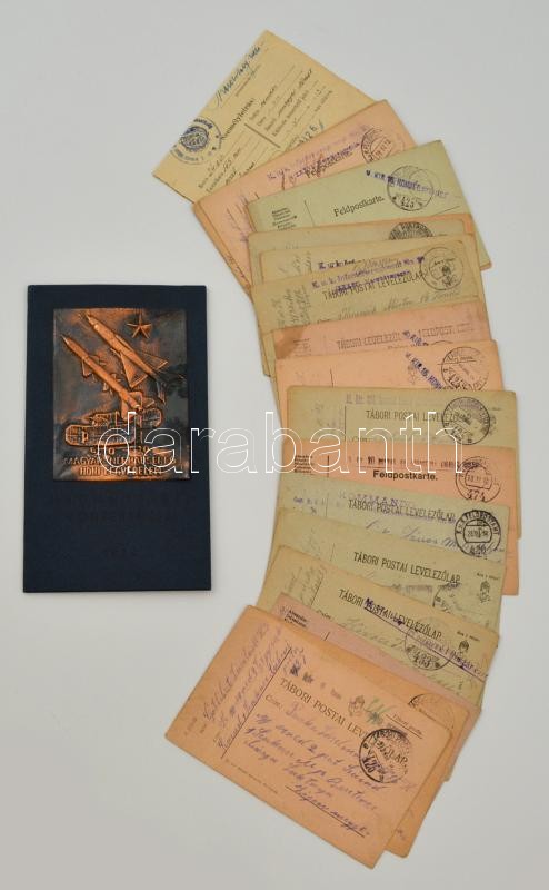cca 1918-1970 Vegyes militária tétel, benne 20 db I. világháborús tábori posta levelezőlap, II. világháborús leszerelési jegy, Magyar Néphadsereg honi légvédelem konferencia meghívója fém plakettel,