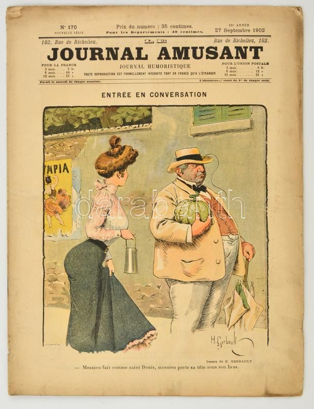 1902 Journal Amusant No. 170, journal humoristique - francia nyelvű vi... https://www.darabanth.com/hu/298-Gyorsarveres/298.0/Festmeny-mutargy-papirregiseg-egyeb/Nyomtatvanyok~100026/1902-Journal-Amusant-No-170-journal-humoristique--francia-nyelvu-vicclap-illusztraciokkal-16~II1594208
