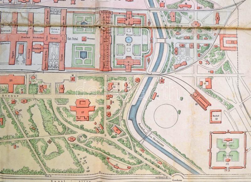 1873(?) Wien Ausstellungsplan vászonra kasírozott Bécs világkiállítás térképe 1:3000, 60×46 cm /