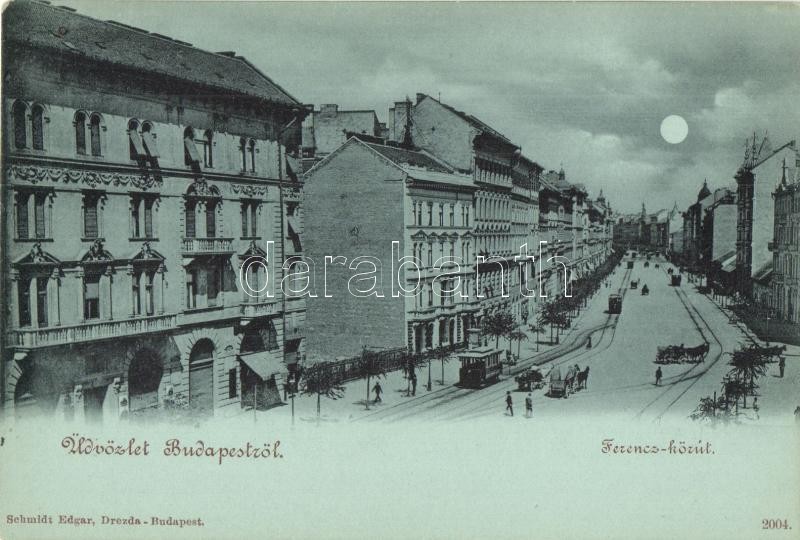 Budapest IX. Ferenc körút, villamosok, este https://www.darabanth.com/hu/298-Gyorsarveres/298.0/Kepeslapok/Magyarorszag~200006/Budapest-IX-Ferenc-korut-villamosok-este~II1594495