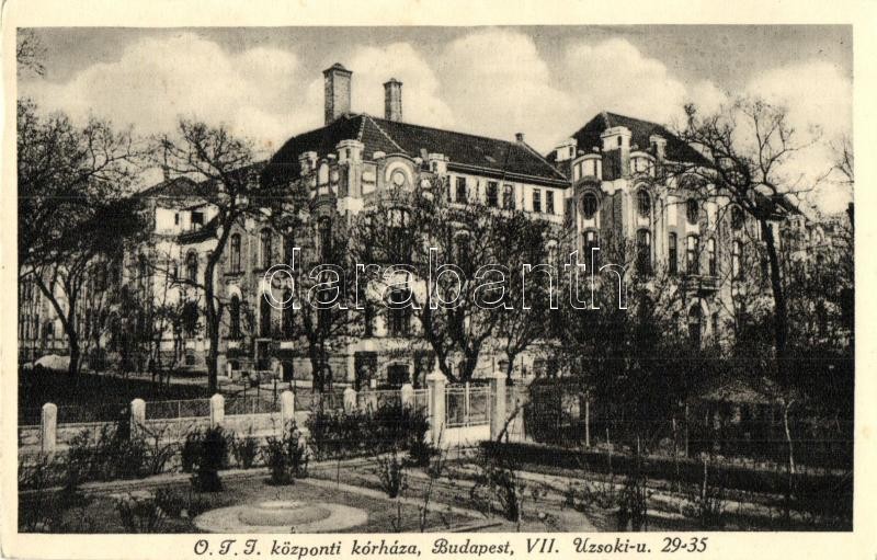 Budapest XIV. OTI központi kórháza; Uzsoki utca 29-35. https://www.darabanth.com/hu/298-Gyorsarveres/298.0/Kepeslapok/Magyarorszag~200006/Budapest-XIV-OTI-kozponti-korhaza-Uzsoki-utca-29-35~II1591636