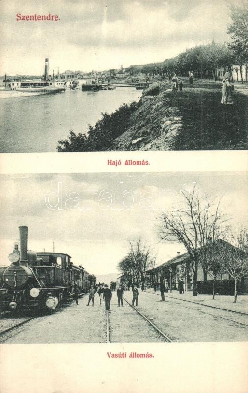 Leírás: Szentendre, Hajóállomás, vasútállomás, gőzmozdony, Pálfy János kiadása (EK)