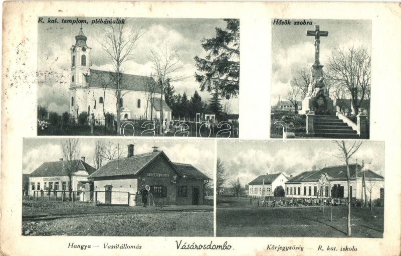 Vásárosdombó, Hősök szobra, Hangya, vasútállomás, Körjegyzőség, Római ... https://www.darabanth.com/hu/298-Gyorsarveres/298.0/Kepeslapok/Magyarorszag~200006/Vasarosdombo-Hosok-szobra-Hangya-vasutallomas-Korjegyzoseg-Romai-katolikus-templom-~II1595533