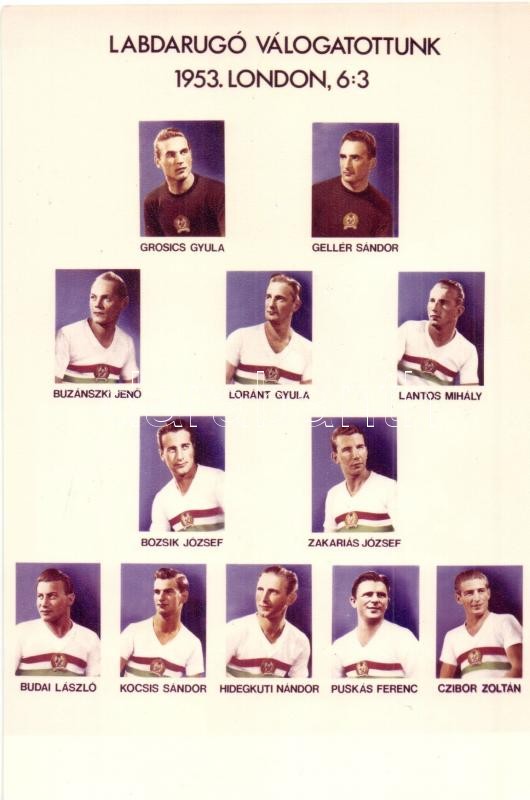 1953 Magyar Labdarúgó Válogatott Londonban 6:3, Aranycsapat. Puskás, Grosics, Hidegkuti / Hungarian national football team, Golden Team. Modern postcard