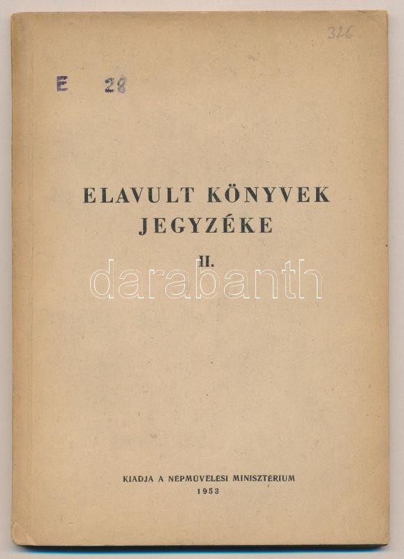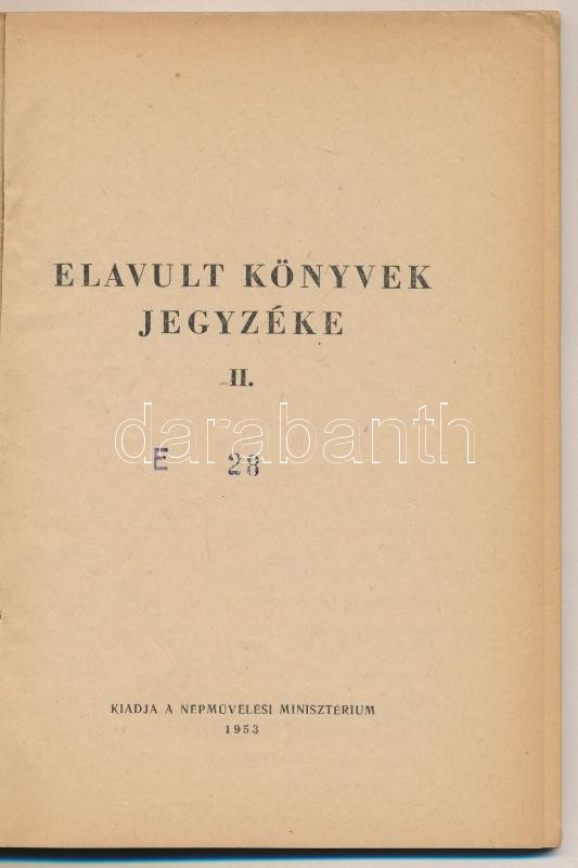Elavult könyvek jegyzéke II. Bp., 1953, Népmüvelési Minisztérium. Kiad... https://www.darabanth.com/hu/298-Gyorsarveres/298.0/Konyvek/Konyvek-Egyeb-ritkasagok~400016/Elavult-konyvek-jegyzeke-II-Bp-1953-Nepmuvelesi-Miniszterium-Kiadoi-papirkotes-Jo-C3~II1581042