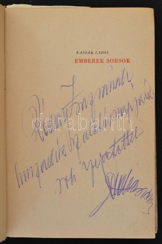 Leírás: Kassák Lajos: Emberek és sorsok. Bp., 1943, Stilus Könyvkiadó. Kiadói félvászon-kötés, ajándékozási sorokkal. Első kiadás.