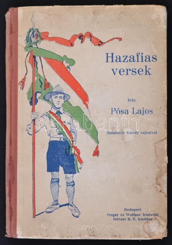 Pósa Lajos: Hazafias versek. Mühlbeck Károly rajzaival. Bp., é.n., Singer és Wolfner. Kiadói félvászon-kötés, kissé kopott, kissé foltos borítóval, kissé sérült gerinccel.
