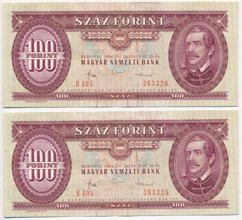 1984. 100Ft (2x) sorszámkövetők, nyomdai festékfoltok T:II https://www.darabanth.com/hu/298-Gyorsarveres/298.0/Numizmatika/Magyar-bankjegyek~300006/1984-100Ft-2x-sorszamkovetok-nyomdai-festekfoltok-TII~II1592109