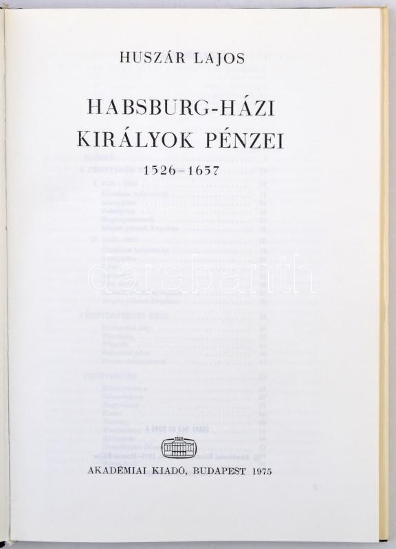 Huszár Lajos: Habsburg-házi királyok pénzei 1526-1657. Budapest, Akadé... https://www.darabanth.com/hu/298-Gyorsarveres/298.0/Numizmatika/Numizmatikai-irodalom~300002/Huszar-Lajos-Habsburg-hazi-kiralyok-penzei-1526-1657-Budapest-Akademiai-Kiado-1975-HasznC3~II1593691