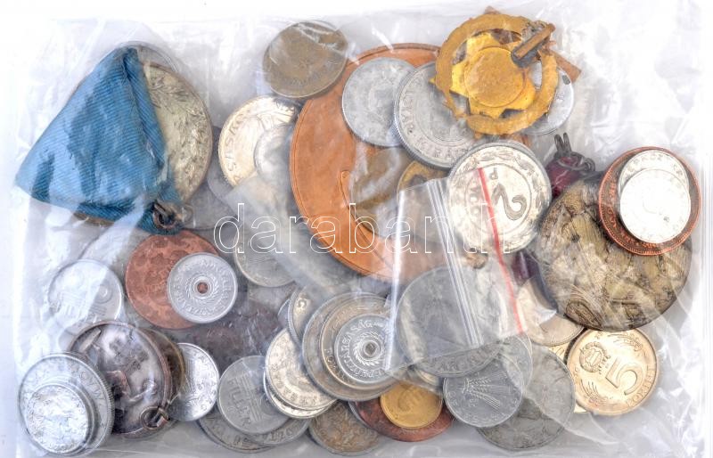 Leírás: Vegyes fémpénz, díjérem, kitüntetés és emlékérem tétel ~400g súlyban, közte 1930. 5P Ag "Horthy jobbra" T:vegyes