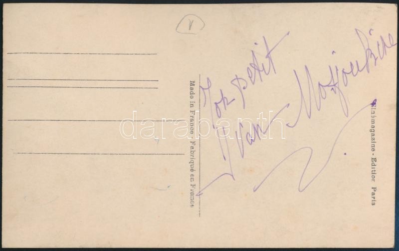 Leírás: Ivan Mosjouking színész aláírása őt magát ábrázoló fotólap hátulján