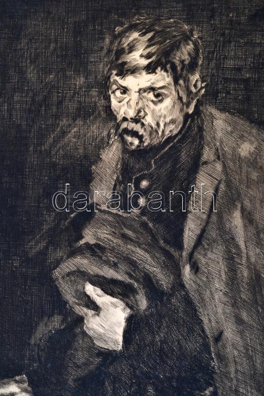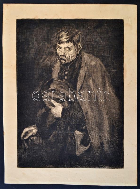 Leírás: Fényes Adolf (1867-1945)-Prihoda István (1891-1956): Koldus. Rézkarc, papír, jelzés nélkül, 33×24 cm