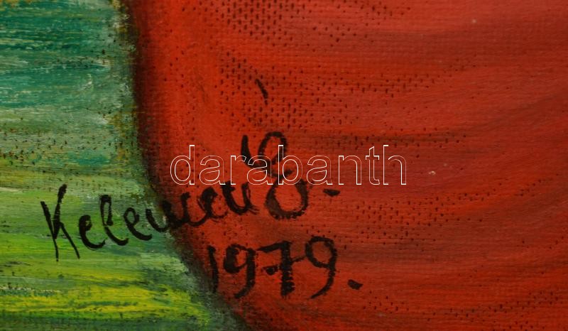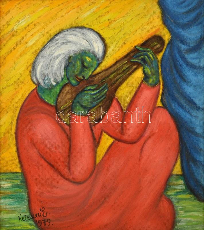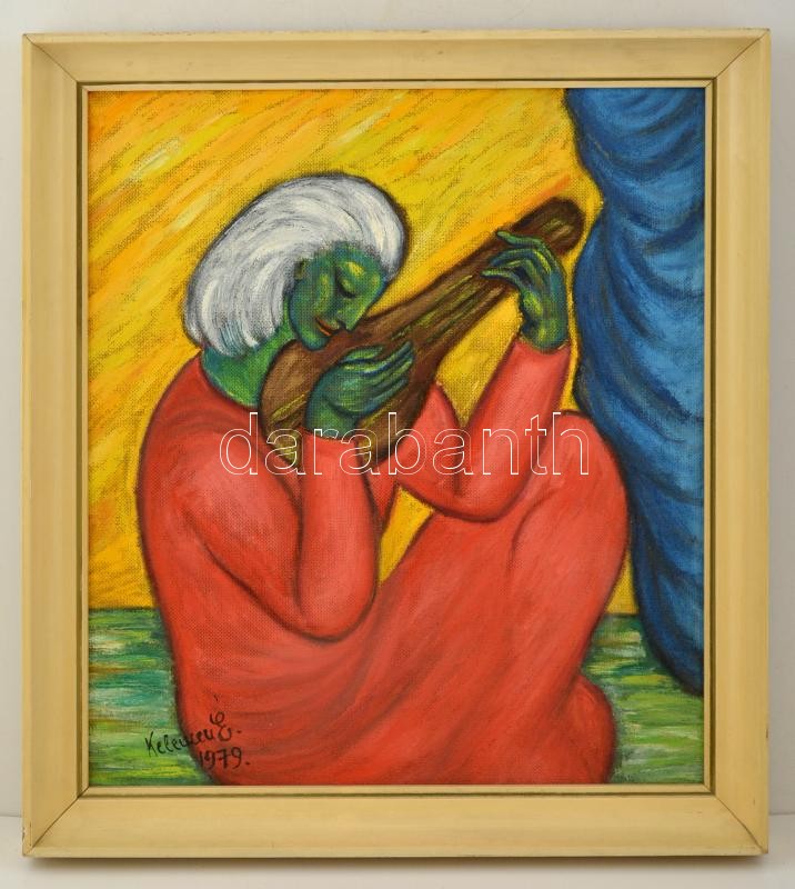 Leírás: Kelemen Éva (?-?): Akkordok, olaj, farost, keretben, 49×43 cm