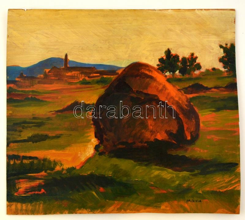 Mikola jelzéssel: Szénaboglya. Olaj, falemez, 38×43 cm https://www.darabanth.com/hu/299-Gyorsarveres/299.0/Festmeny-mutargy-papirregiseg-egyeb/Festmenyek-es-grafikak~1/Mikola-jelzessel-Szenaboglya-Olaj-falemez-38C39743-cm~II1580686