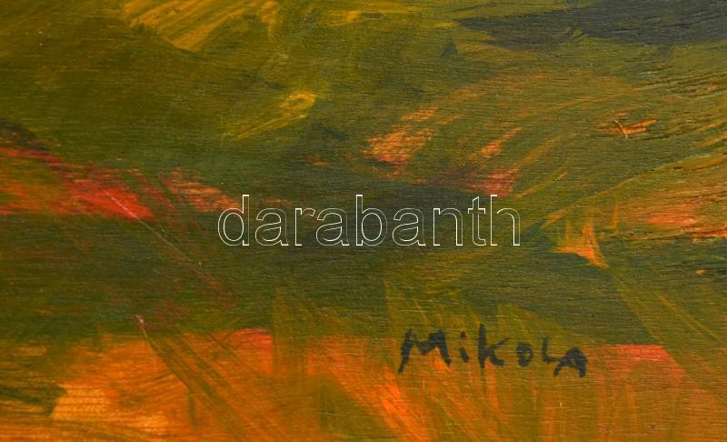 Leírás: Mikola jelzéssel: Szénaboglya. Olaj, falemez, 38×43 cm
