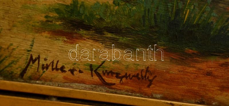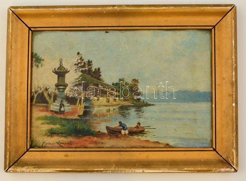 Leírás: Müller jelzéssel: A rév a folyó partján. Olaj, karton, keretben, 18×28 cm