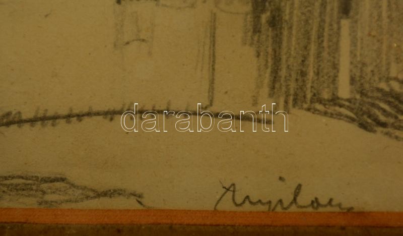 Leírás: Nyilas jelzéssel: Parasztház. Ceruza, papír, üvegezett keretben, 9×13 cm