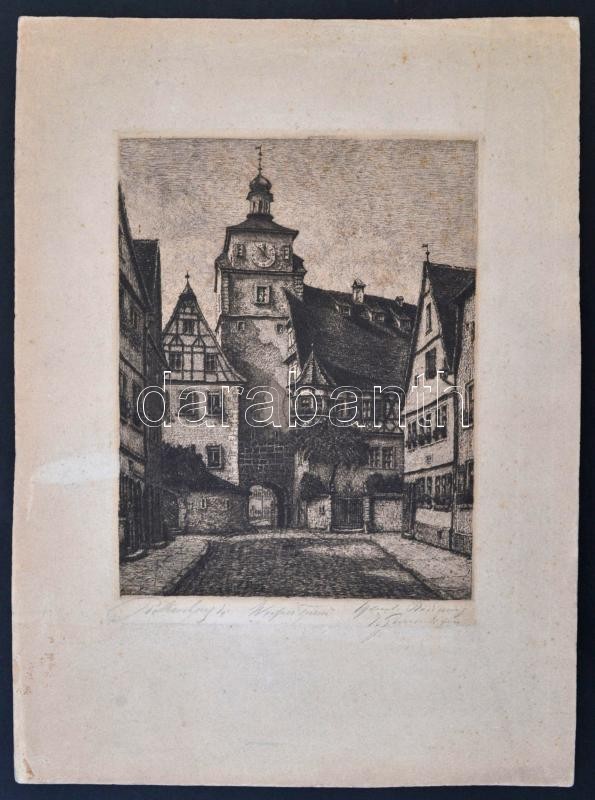 Leírás: Olvashatatlan jelzéssel: Tűztorony. Rézkarc, papír, jelzett, 22x16,5 cm