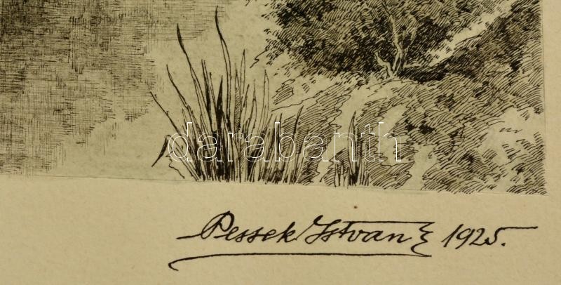 Leírás: Pessek István (?-?): Patak part. Rézkarc, papír, jelzett, 22×16 cm