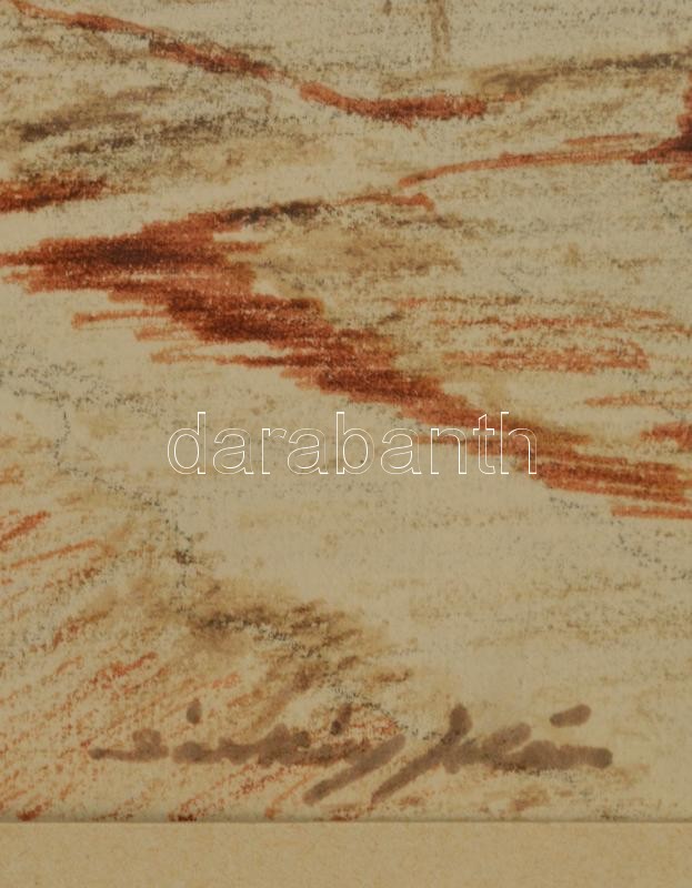Leírás: Sárkány Jolán (1907-1985): Ház az erdőnél. Vegyes technika, papír, jelzett, üvegezett keretben, 23×33 cm