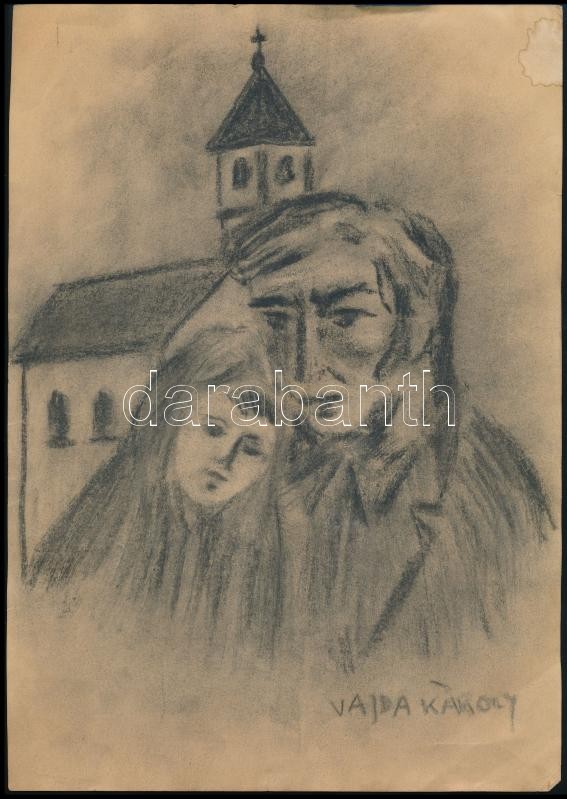 Vajda Károly (?-?): Gyászolók. Szén, papír, foltos, 29×20 cm https://www.darabanth.com/hu/299-Gyorsarveres/299.0/Festmeny-mutargy-papirregiseg-egyeb/Festmenyek-es-grafikak~1/Vajda-Karoly--Gyaszolok-Szen-papir-foltos-29C39720-cm~II1569635