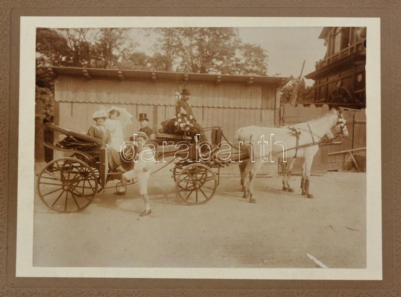 1914 Az utolsó békés sétakocsizás a nagy háború előtt, 1914. VI. 2., fotó kartonra kasírozva, a hátoldalon feliratova, dátumozva, német nyelven, 13x18 cm./ 1914 The last peacefull carriage ride before the firs world war, 1914. VI. 2., photo on cartboard, with writings on the back, with date,in German language, Photo size: 13x18 cm.