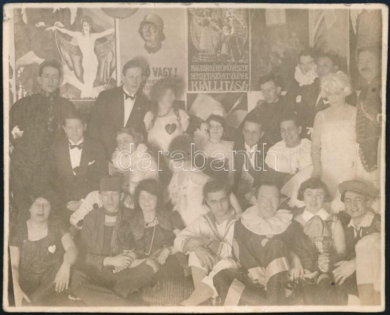 1926 Farsangi művészbál, érdekes plakátokkal a háttérben 7x10 cm https://www.darabanth.com/hu/299-Gyorsarveres/299.0/Festmeny-mutargy-papirregiseg-egyeb/Foto~20/1926-Farsangi-muveszbal-erdekes-plakatokkal-a-hatterben-7x10-cm~II1602997