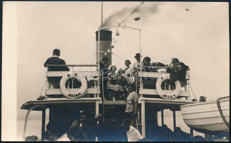 cca 1930-1940 A Helka hajó a Balatonon, fotólap, 8,5x14 cm https://www.darabanth.com/hu/299-Gyorsarveres/299.0/Festmeny-mutargy-papirregiseg-egyeb/Foto~20/cca-1930-1940-A-Helka-hajo-a-Balatonon-fotolap-8-5x14-cm~II1602178