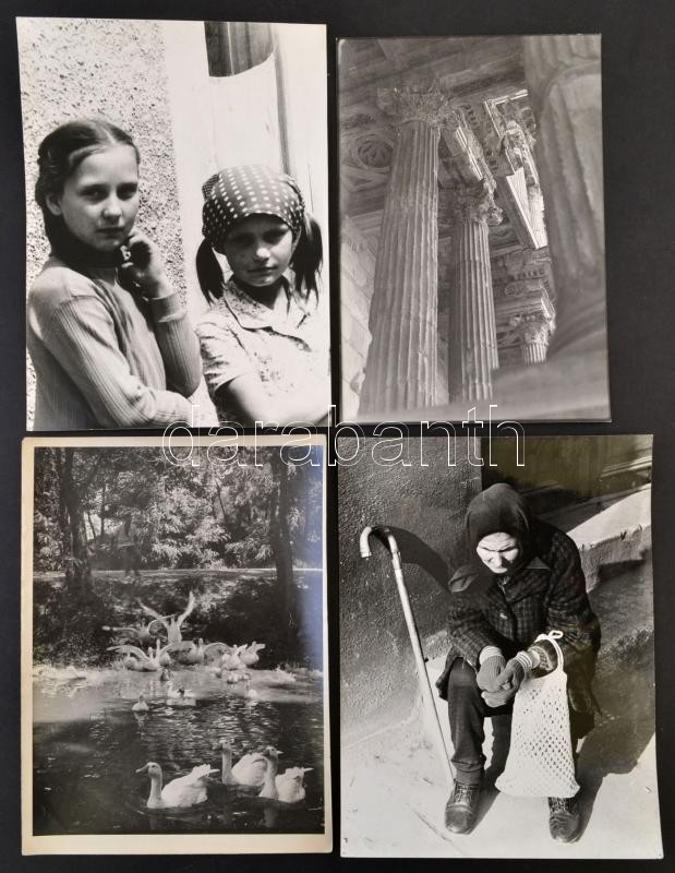Leírás: cca 1960 Vintage fotók tétele, 99 db különféle témákat, műfajokat ábrázoló vintage nagyítások, egy része jelzett, 18x24 cm