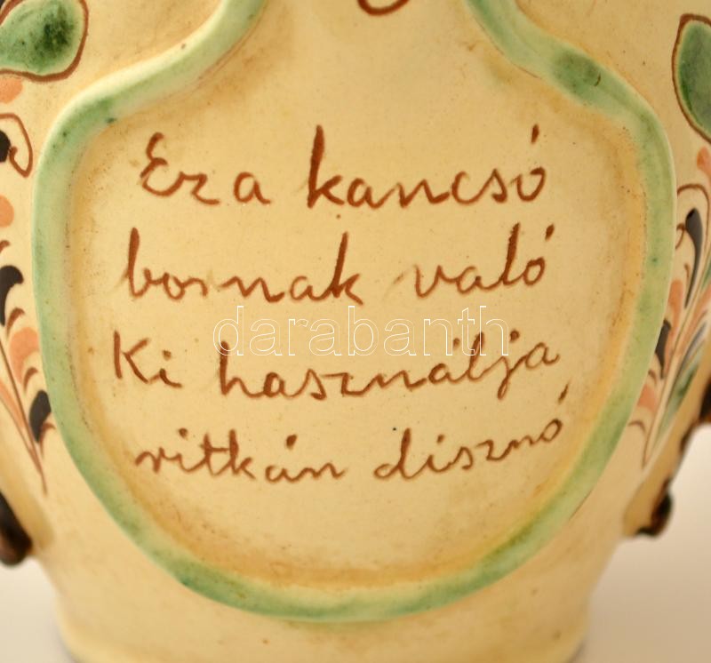 Karcagi Miska kancsó, kézzel festett kerámia, jelzett, lepattanással, ... https://www.darabanth.com/hu/299-Gyorsarveres/299.0/Festmeny-mutargy-papirregiseg-egyeb/Keramiak~7/Karcagi-Miska-kancso-kezzel-festett-keramia-jelzett-lepattanassal-m-28-cm~II1603956
