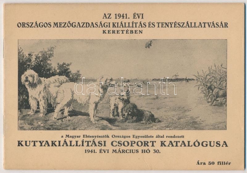 Leírás: 1941 Az Országos Mezőgazdasági Kiállítás és Tenyészállatvásár keretében megrendezett kutyakiállítás katalógusa