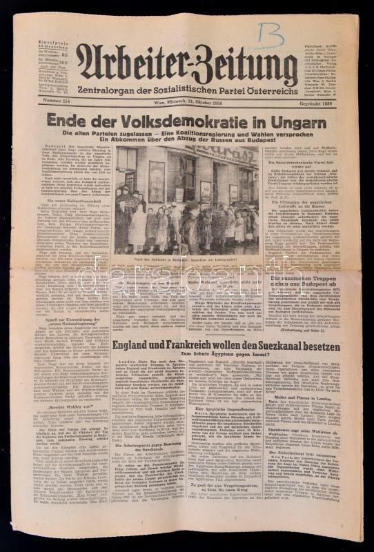 1956 Az osztrák Arbeiter Zeitung magyar forradalomról tudósító száma https://www.darabanth.com/hu/299-Gyorsarveres/299.0/Festmeny-mutargy-papirregiseg-egyeb/Nyomtatvanyok~29/1956-Az-osztrak-Arbeiter-Zeitung-magyar-forradalomrol-tudosito-szama~II1598817