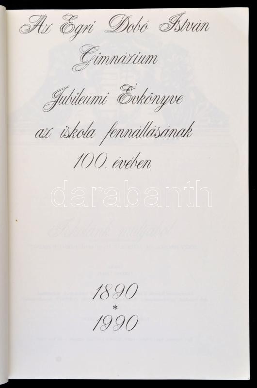 1990 Az Egri Magyar Királyi Állami Dobó István Gimnázum Jubileumi évkönyve az iskola fennállásának 100. évében. 1890-1990. Szerk.: Berzy Piroska, Dr. Petercsák Tivadarné, Hernádi Ferenc. Eger, Egri Nyomda, 184 p. Papírkötés, fekete-fehér fotókkal.