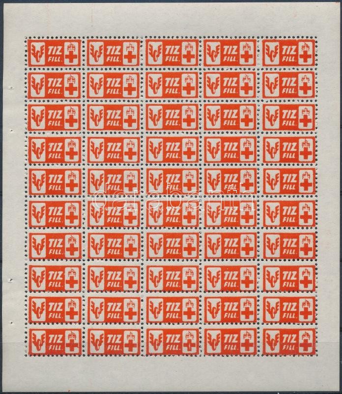Leírás: ~1940 Vöröskereszt 10f adománybélyeg 50-es teljes ívben
