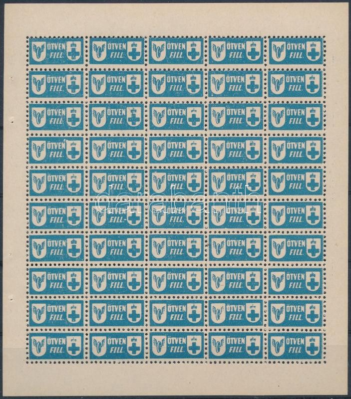 Leírás: ~1940 Vöröskereszt 50f adománybélyeg 50-es teljes ívben