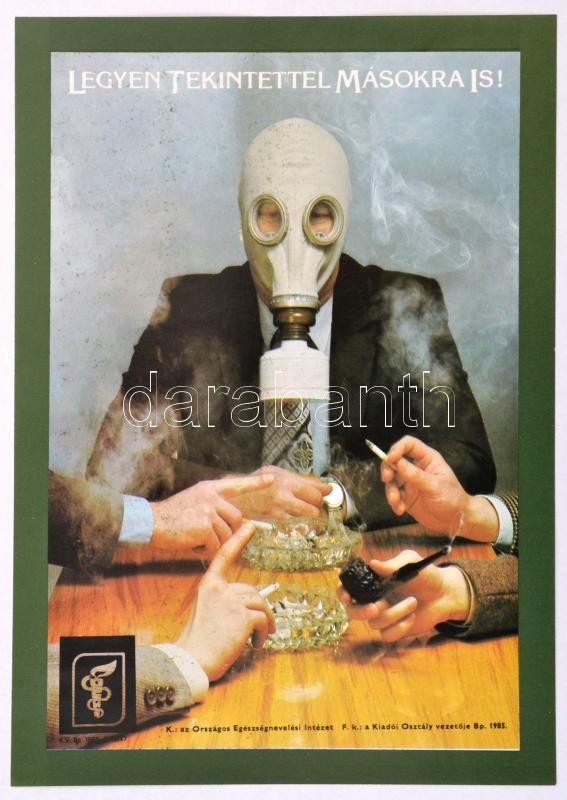 1985 "Legyen tekintettel másokra is!" Országos Egészségnevel... https://www.darabanth.com/hu/299-Gyorsarveres/299.0/Festmeny-mutargy-papirregiseg-egyeb/Plakat~500096/1985-Legyen-tekintettel-masokra-is-Orszagos-Egeszsegnevelesi-Intezet-dohanyzas-ellenes-k~II1598204